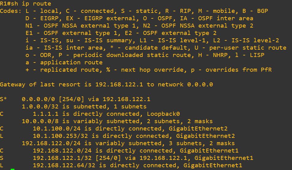 ip route 0.0.0.0 0.0.0.0 10.1.100.1